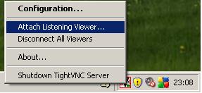 - Right-click on the TightVNC icon. Left-click "Attach Listening