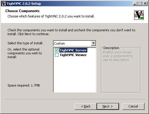 - Untick TightVNC Viewer. Leave TightVNC Server ticked. Click Next.